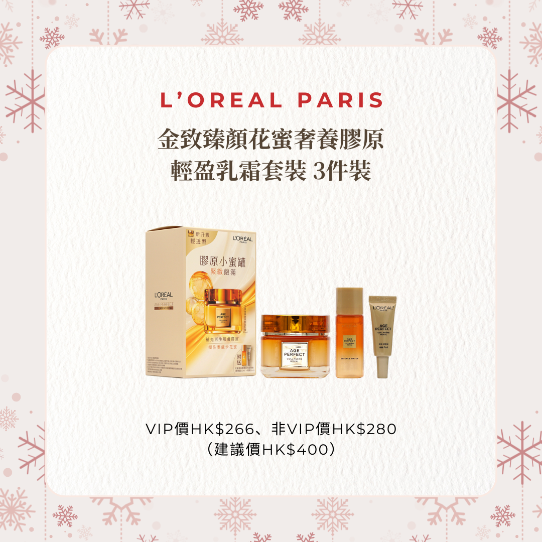 67折#!L’OREAL PARiS金致臻顏花蜜奢養膠原輕盈乳霜套裝 3件裝|VIP價HK$266、非VIP價HK$280(建議價HK$400)