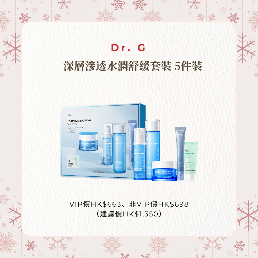 5折#!Dr. G深層滲透水潤舒緩套裝 5件裝|VIP價HK$663、非VIP價HK$698(建議價HK$1,350)