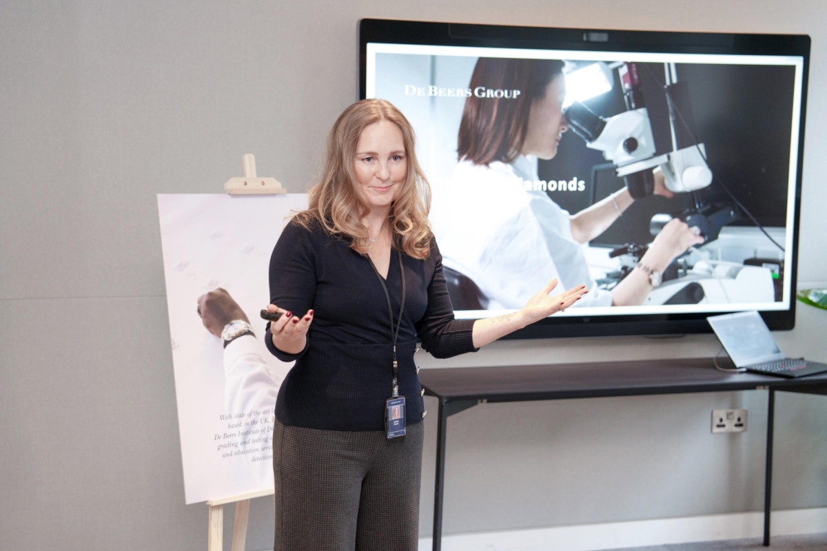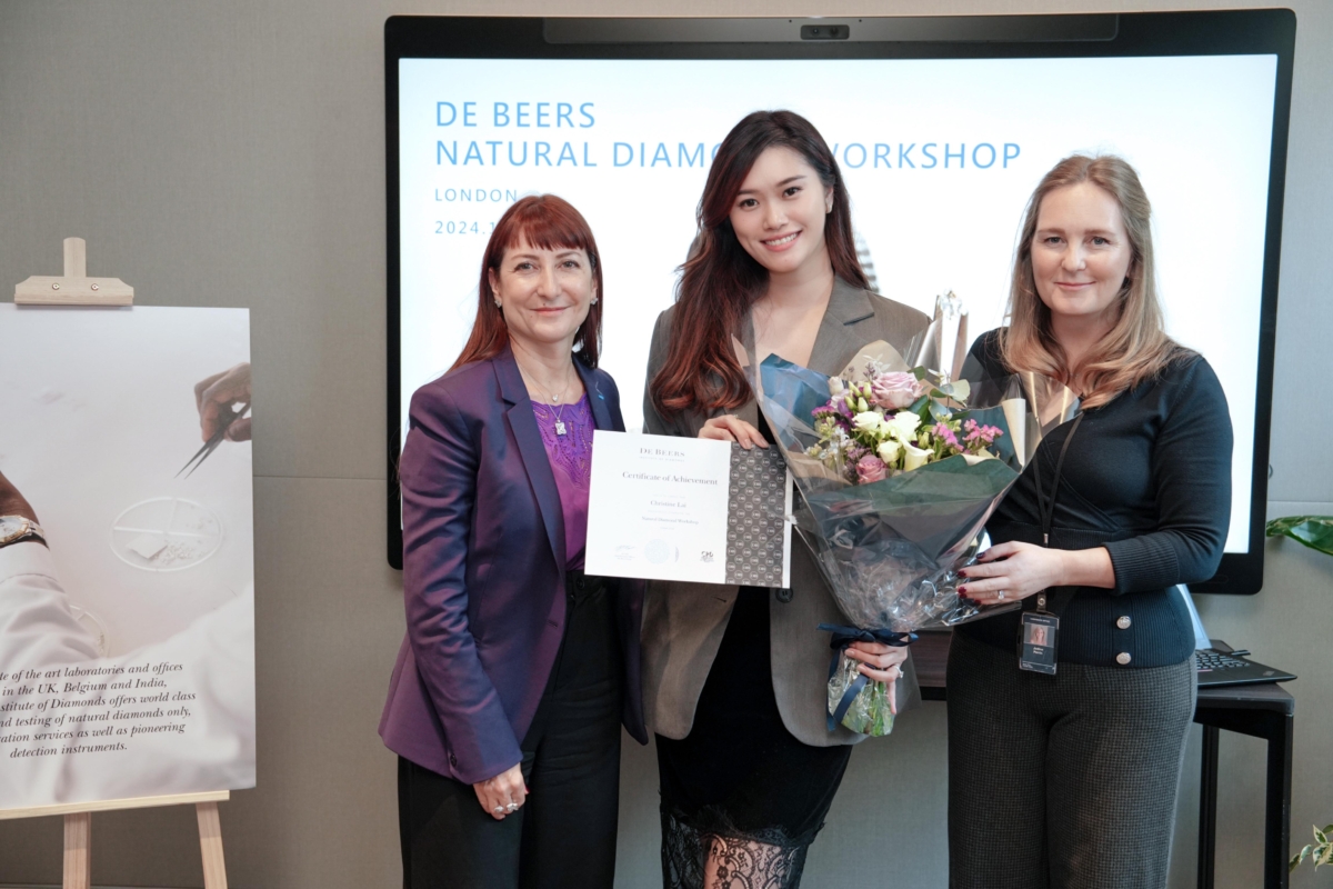 Jodine 特別強調了天然鑽石的情感價值「每一顆鑽石都可以講述一個人的故事。當你真正看到鑽石內部的細節,你會感受到它獨特的個性,這種情感的連結是無法替代的。」她還提到,De Beers的教育理念並不僅僅是傳授知識,而是希望能讓學員與鑽石建立情感上的共鳴,這正是她在鑽石教育中最享受的部分。
