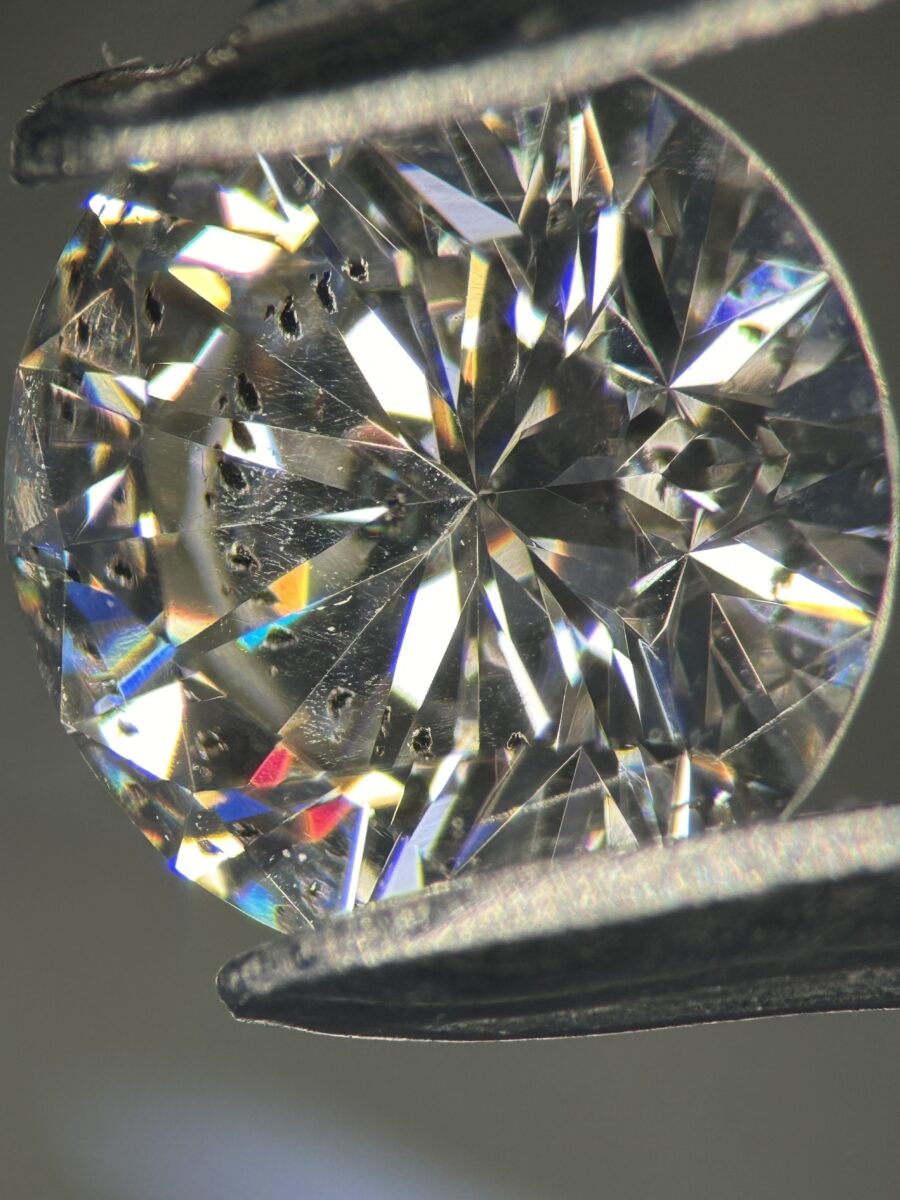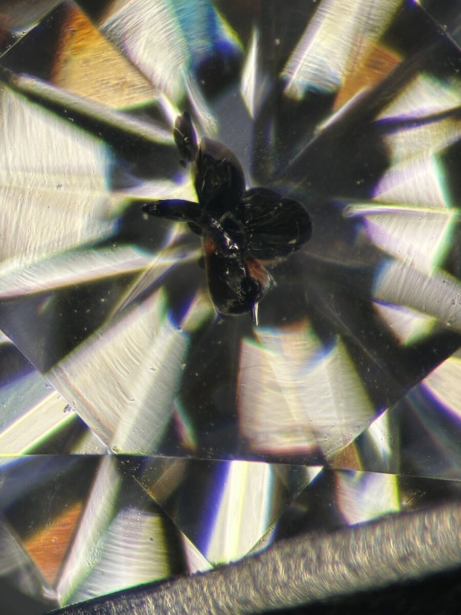 我有機會近距離觀察數百顆未經打磨的鑽石原石,透過顯微鏡深入鑽石內部,欣賞那些獨特的淨度特徵。Jodine 用她溫柔而充滿熱情的語氣分享「每一顆鑽石都是獨一無二的,它的內部特徵記錄了它的成長故事。我們稱這些特徵為鑽石的指紋,它們讓每一顆鑽石變得如此特別。」