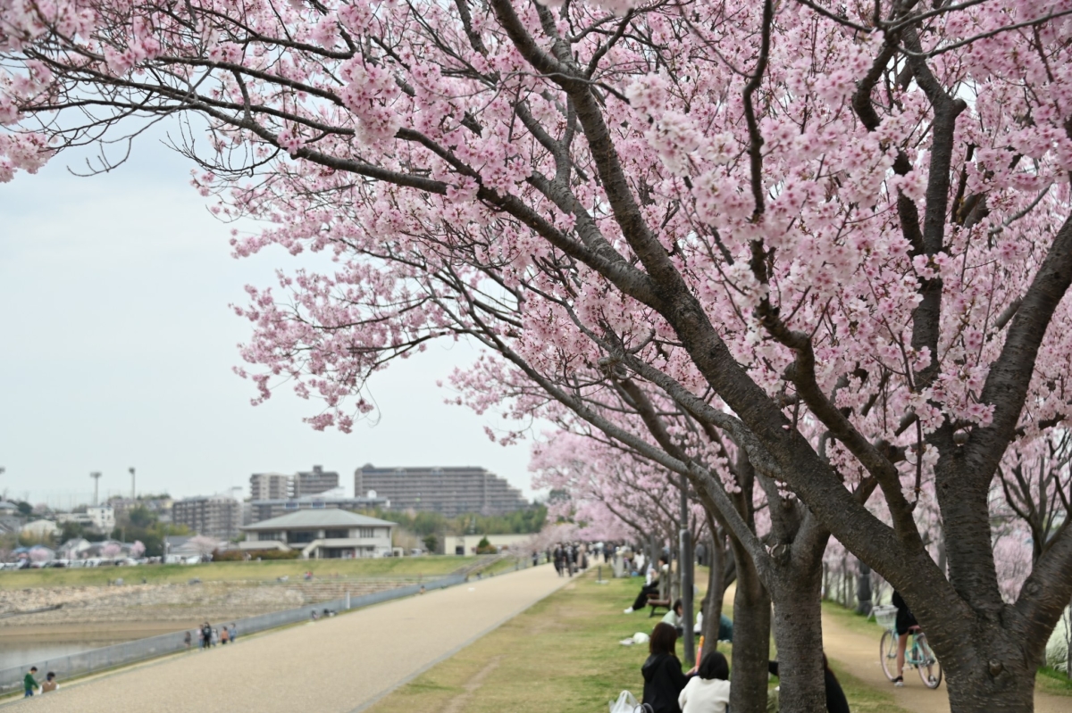 以「太陽之塔」聞名的萬博紀念公園,入選《日本賞櫻名勝百選》。從三月中旬開始,彼岸櫻和寒緋櫻便陸續綻放,到了四月,染井吉野櫻更是讓整個公園沈浸在粉色海洋中。園內共有9種櫻花品種,可以細細欣賞不同櫻花的特點,非常適合喜歡探索的旅客。對於計劃早春造訪大阪的旅客,這裡絕對是賞櫻首選!