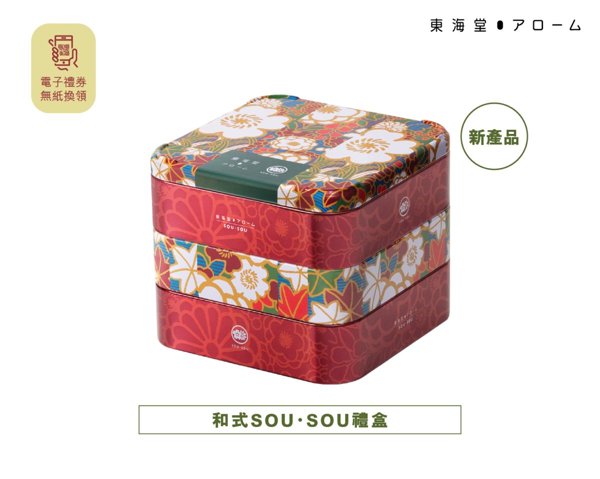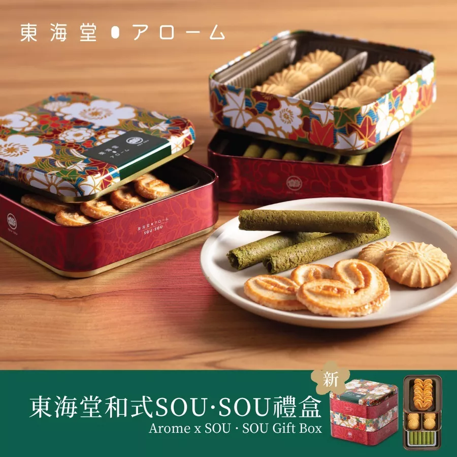 「和式SOU・SOU禮盒」採用三層設計,第一層為鬆脆的原味甜心酥,第二層為香濃鬆化的原味鬆鬆曲奇,而最底層為淡淡茶香的抹茶輕食蛋卷,每一層打開都能帶來無限驚喜!設計大方得體,更是送禮的不二之選!