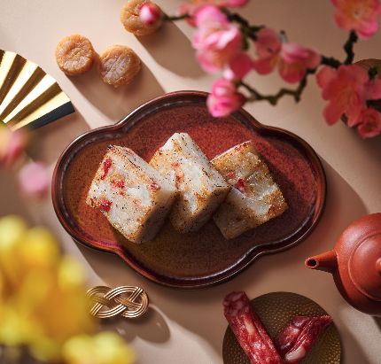 「黑松露臘味蘿蔔糕」以白蘿蔔及風味臘腸為主要材料,白蘿蔔被切成粗條,不僅增加了口感,還保留了蘿蔔的天然清甜,再搭配切粒炒香的臘腸與蝦米。而加入黑松露後,其獨特的香氣更進一步提升整體風味,令臘腸的香氣在口中久久不散。