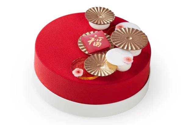 蛋糕的裝飾採用了紅色、金色和白色的扇花,不僅視覺上吸引人,還傳遞著美好的祝福。融入了梨和烏龍茶的細緻花香,梨的清甜與烏龍茶的淡雅香氣相得益彰。輕巧的巧克力慕斯奶油質感使整體更柔滑細膩,入口即化的感受搭配淡雅的甜味,絕對能夠俘獲每一位甜品愛好者的心。