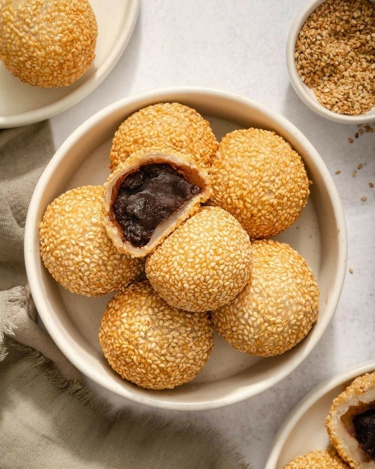 芝麻球是以糯米粉包裹甜餡,再經油炸而成的圓形小吃,由於其製作過程含油量高,每個約含150卡路里。