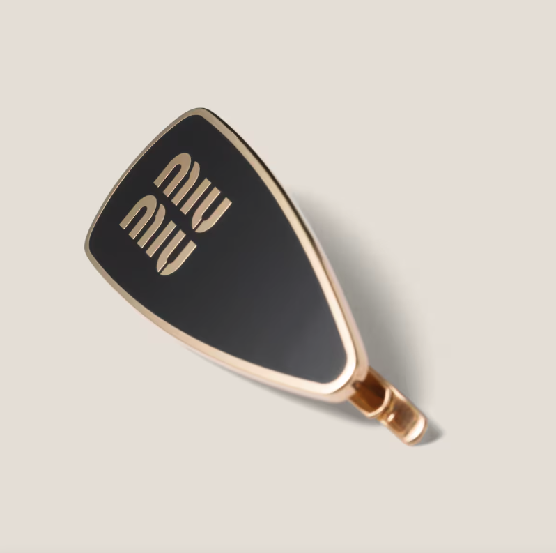 說到千金風穿搭一定不能沒有Miu Miu,這款Miu Miu的搪瓷金屬髮夾以黑金配色突顯高級感,Miu Miu標誌更是搪瓷金屬配飾的焦點所在,為配飾增添時尚魅力!