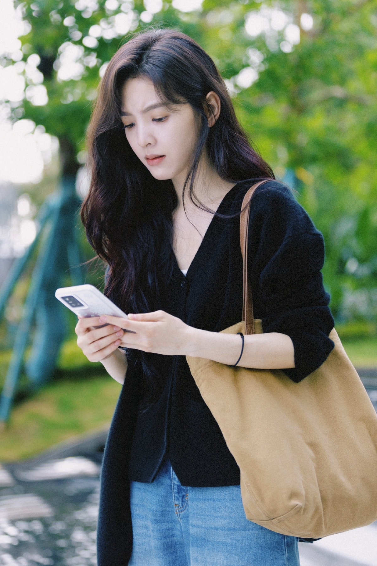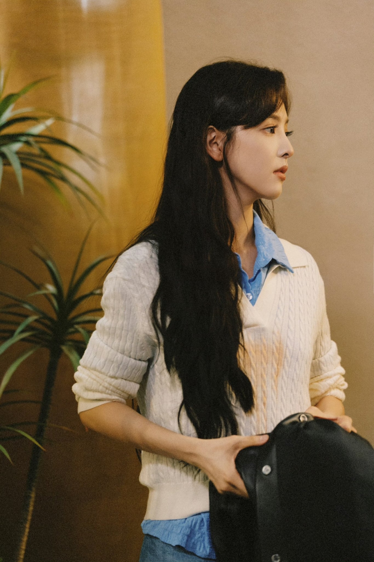 而温以凡日常亦會穿得休閒一點,但不失清新、淡雅的氣質!利用大地色的單品作搭配,同樣較多強調層次感,加上外搭杏色或棕色外套會帶點溫暖少女的感覺~