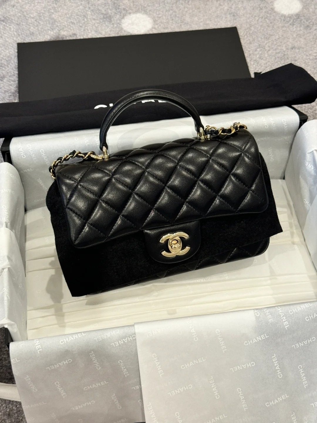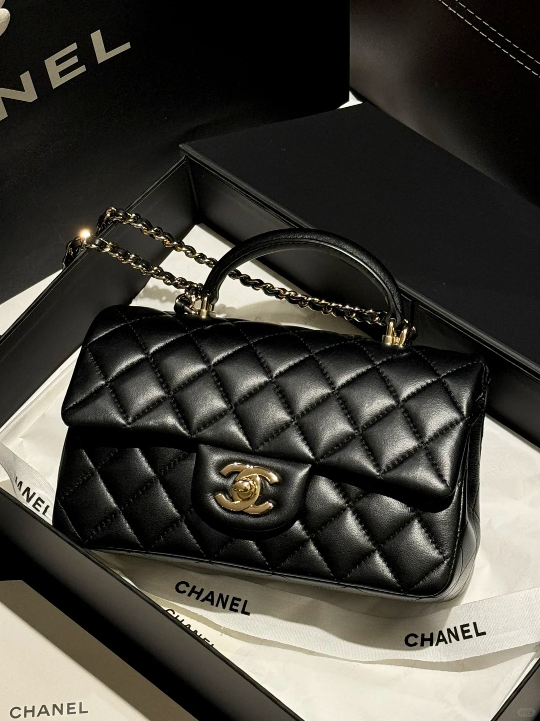 Mini CF Handle不單繼承了CF經典設計,還加上了手柄,令它更顯優雅!手袋上的經典格菱紋及雙C扣,完美融入CHANEL標誌性元素~同時這款手袋在專櫃算是一袋難求,這也成為它保值原因之一!