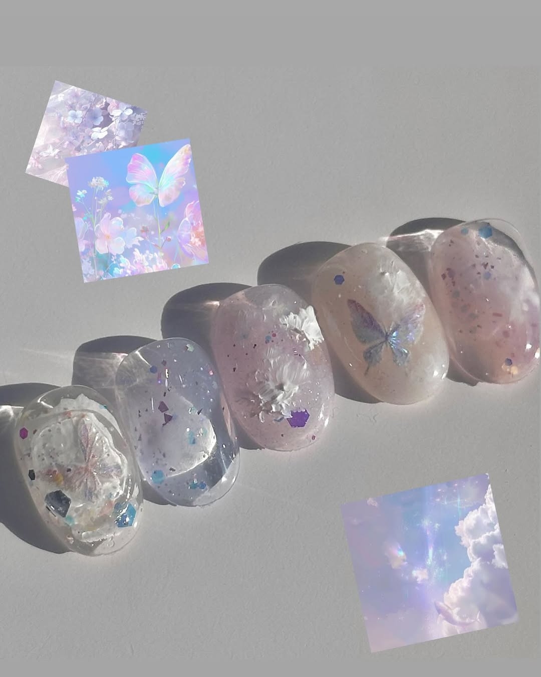 蝴蝶是春天最具代表性的意象之一,象徵自由、希望與美好蛻變。2025年的蝴蝶美甲不再只是簡單的貼紙,而是運用了鏡面粉、 立體蝴蝶飾品和透明琉璃翅膀,讓美甲充滿層次感與靈動感!
