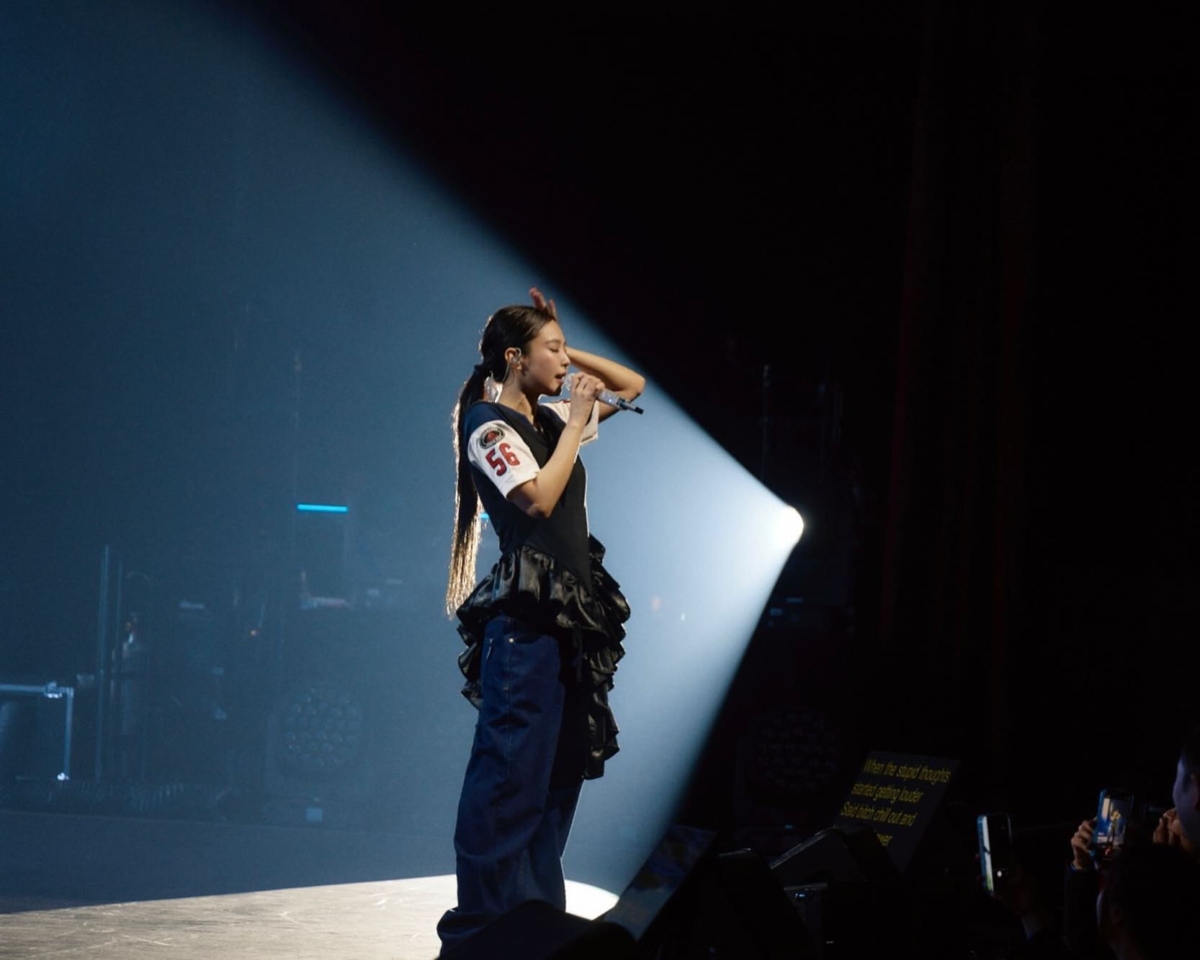 今次Jennie的個人演唱會上就延續了她對芭蕾風及Blokecore風格的喜愛,將本來優雅甜美、下擺帶泡泡荷葉邊的黑色連身芭蕾裙當成外搭,混搭一件型格的球衣在內,下身則選擇一條落地牛仔寬褲加白球鞋,甜美中多了幾分叛逆感,達到甜美與帥氣的極致平衡~大膽的混搭卻意外地和諧,果然是風格百變的Jennie!