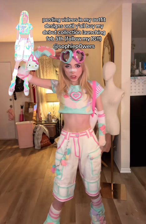 Sophie Powers還有另一個身份就是——服裝設計師,她創立了個人品牌「Gloomy Bear Store」。她非常喜歡動漫、Y2K等色彩繽紛的風格~