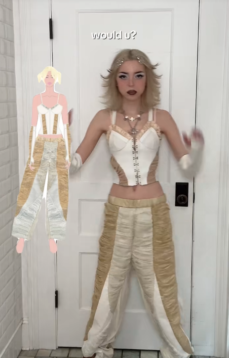 有時候找不到合適的衣服,更會自己設計表演服飾,與裁縫師討論設計圖,再請對方製作出她心中所想的衣服!