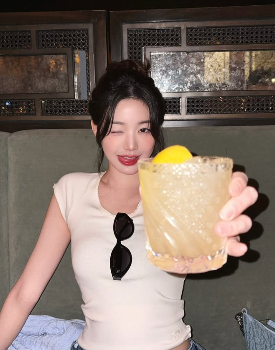 Winter擅長把生活小物變成拍照主角,最經典的就是「拿著零食拍照」!無論是糖果、薯片,甚至是一杯珍珠奶茶,只要巧妙地擺在臉旁或嘴邊,就能自然地營造出甜美氛圍,而且能讓整張照片更有生活感。
