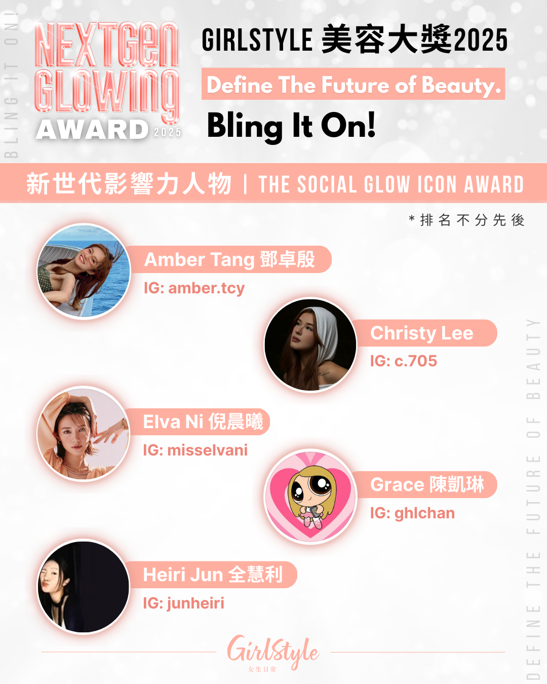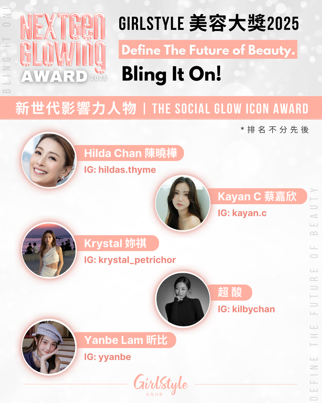 經過 100位新世代KOL、專業編輯團隊 同 2,574位讀者投票 (超級多謝大家嘅踴躍參與!!) 嘅共同選出,首屆 GirlStyle NextGen Glowing Awards 全部獎項得主,隆重登場!🎉💖 好感動可以眾多優秀參選品牌中,發掘出真正代表「未來美力」的名字。佢哋嘅創新、影響力同堅持,絕對值得被看見!! ✨