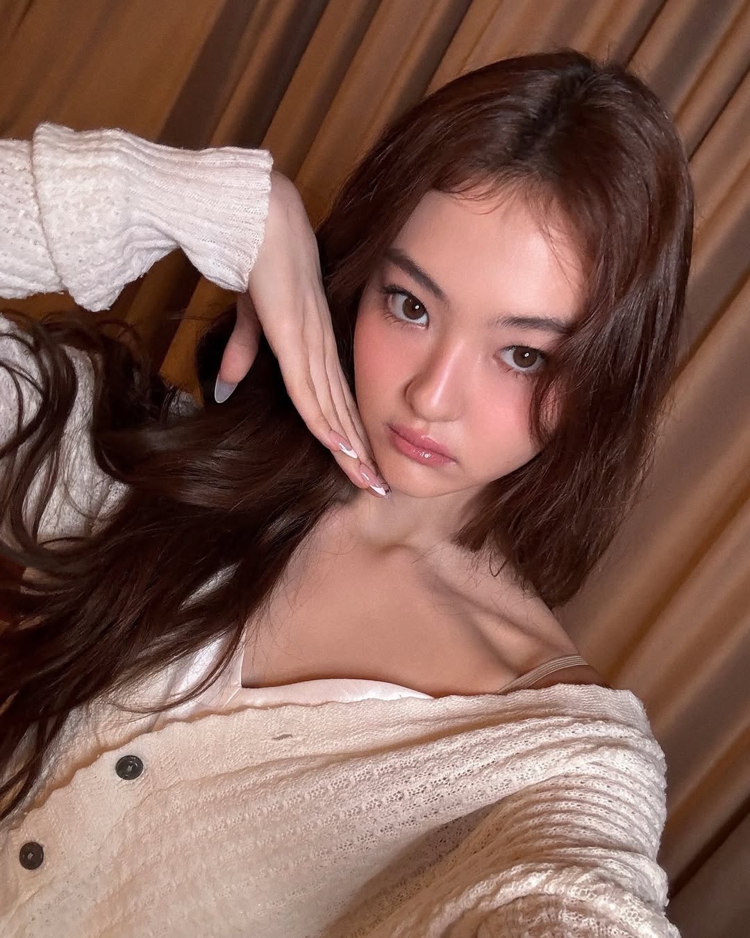 Ella Gross 的眉型通常是比較自然的平眉,但會根據臉型略微調整,保持眉毛的毛流感,不會過於強調眉峰,這與她的混血感和清冷氣質相輔相成。髮型方面,她也會嘗試多種風格,例如隨性高髮髻搭配自然八字瀏海,或半公主頭搭配髮夾,這些髮型都能突顯她的精緻五官和混血輪廓,進一步強化整體妝容的氛圍。