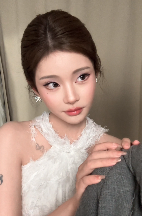 她精準捕捉了Aespa成員Ningning的妝容精髓,成功地重現其標誌性的眼妝,包括細膩的眼線、根根分明的睫毛,以及眼下臥蠶的打造,讓眼神看起來深邃又充滿魅力。同時,臉頰上的粉嫩胭脂和水潤豐盈的唇妝,也完美呼應了Ningning清透自然的妝感,整體呈現出一種既甜美又帶有輕奢感的風格!