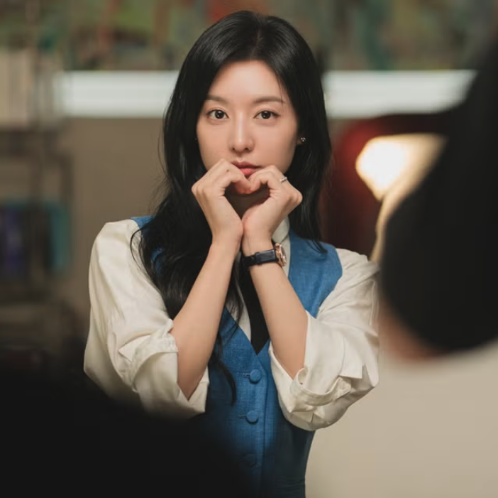 她著重打造出輕薄透亮的底妝,凸顯出肌膚的自然質感。眼妝部分則巧妙地強調了金智媛內斂的眼神,通過細緻的內眼線和自然卷翹的睫毛,營造出深邃但不濃豔的眼部輪廓,沒有過多的色彩暈染,更顯清麗。唇部通常選用低飽和度的豆沙色或裸粉色系,呼應整體溫柔的風格。整個妝容突出了金智媛成熟、優雅且帶有氣質美的形象。