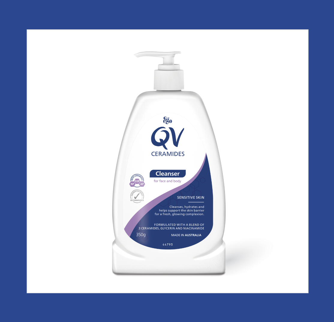 對敏感肌的女生來說清潔面部應以溫和、不刺激為原則,而用錯清潔產品,用再貴的護膚品都是浪費!澳洲No.1最多皮膚科醫生^推薦QV Ceramides潔膚乳通過皮膚科專家測試,不含皂鹼、香料及色素,敏弱肌亦可使用!微泡配方,不但可以清潔身體及面部,裏面的3重協同力量將保濕舒敏功效推向極致,Ceramides (EOP, AP, NP)、Niacinamide維他命 B3同Glycerin,有效修復肌膚屏障,用完之後皮膚乾淨不緊繃~讓你潔膚、保濕、修復一步到位!