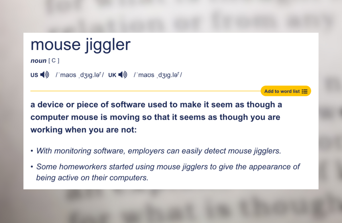 這個詞非常傳神,直譯是「滑鼠擺動器」。它指的是一種可以自動移動滑鼠的工具或程式,目的就是讓電腦保持活躍狀態,避免進入睡眠模式。這在遠程辦公盛行的今天特別受歡迎,因為可以讓老闆以為你一直在電腦前工作!