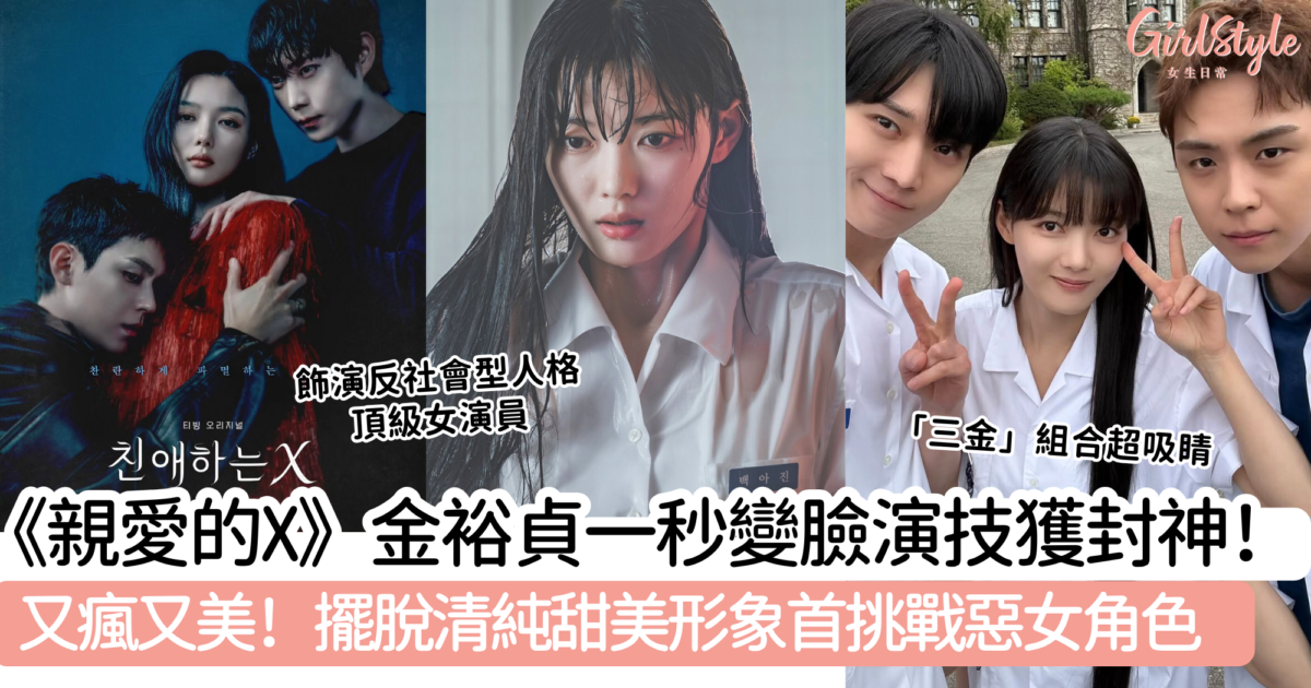 這套新劇近期在Threads的討論熱度極高,到底有什麼特別?由金裕貞、金永大及金度勳「三金」主演的漫改韓劇《親愛的X》日前終於開播,更由《太陽的後裔》、《鬼怪》及《Sweet Home》系列導演李應福操刀,開播第一星期就秒登上韓國熱搜!除了是主角們的高顏值外,最吸睛的一定是童星出身的「國民妹妹」金裕貞首演反派,她的變臉演技被網友封神,指看到她一笑就毛骨悚然,更表示這套劇是她成年後的代表作之一!