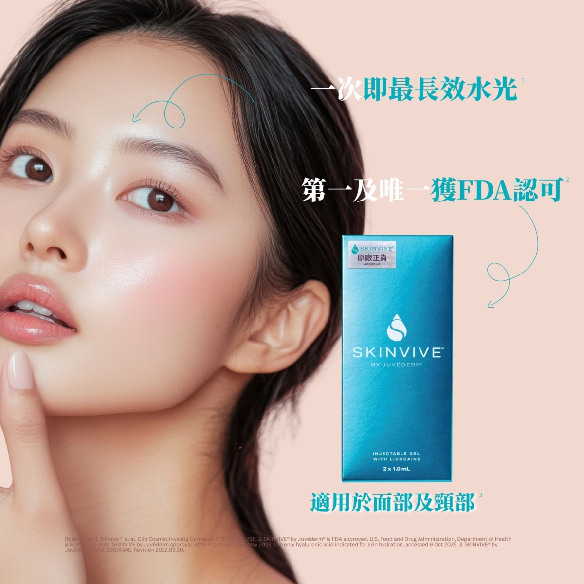 韓國女生真人都像加了濾鏡,肌膚水潤光澤感讓人羡慕不已,皆因水光針已被納入女生們定期保養療程首選!而眾中之首,美編私心推介最近大熱的SKINVIVE®昇光針®, 透過注入透明質酸至真皮層²,從根源補濕²,並提升細胞水通道 (AQP3) 促進皮膚吸收更多水分⁴,有助恢復肌膚屏障功能及彈性活力⁵。只需10-15分鐘⁶,即可改善肌膚色澤*、撫平細紋† 及細緻毛孔‡等健康肌膚指標⁷,打好護膚基礎,輕鬆擺脫繁複保濕步驟!SKINVIVE®昇光針® 更是唯一透明質酸水光品牌同時擁有美國FDA及歐盟CE認證⁸⁻⁹, 1次療程即帶來最長效果¹⁰,持續達9個月² ¹⁰。不止水潤,更要昇光透亮!