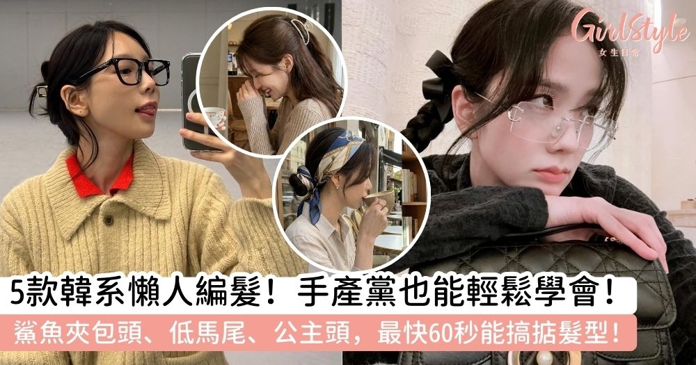 【女生髮型造型】5款韓系懶人編髮|鯊魚夾包頭、低馬尾、公主頭,手殘黨60秒get顯臉小髮型!