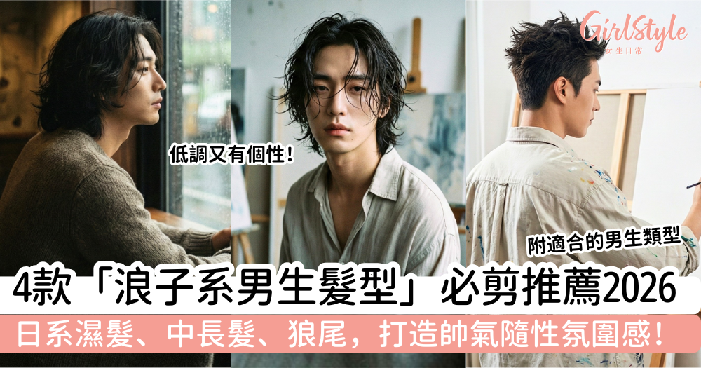 【2026浪子系男生髮型】4款自由不羈必剪造型推薦|日系濕髮、中長髮、狼尾,打造帥氣隨性氛圍感