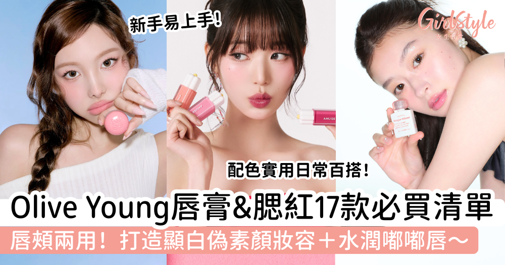 【Olive Young唇膏&腮紅2026】17款彩妝必買清單|唇頰兩用、打造顯白偽素顏妝+水潤嘟嘟唇