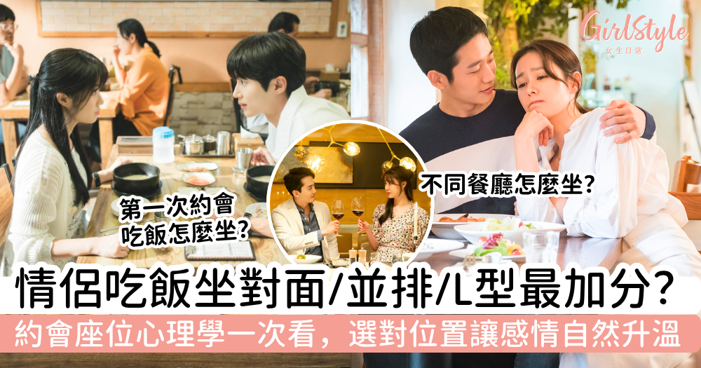情侶吃飯最常見的坐法,大致可以分成三種:對面坐、並排坐和L型坐。這三種坐法沒有誰一定最好,差別在於你們當下想要的是哪一種互動。