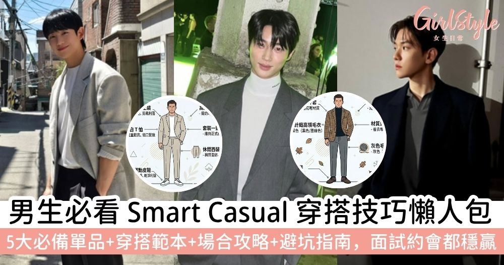 平時把自己打扮得精緻漂亮,回頭看另一半卻還穿著「寬鬆 T-shirt 配短褲」?或是遇到正式場合,他卻穿得像要去開會一樣老氣刻板?其實,掌握 Smart Casual的穿搭邏輯並不難。今次將為大家深度拆解 Smart Casual 意思,從必備的神級單品到不同情境的smart casual穿搭範本一次看。只要學會這幾招,保證另一半帶出門面子十足,一秒變身氣質滿分的韓系男神!