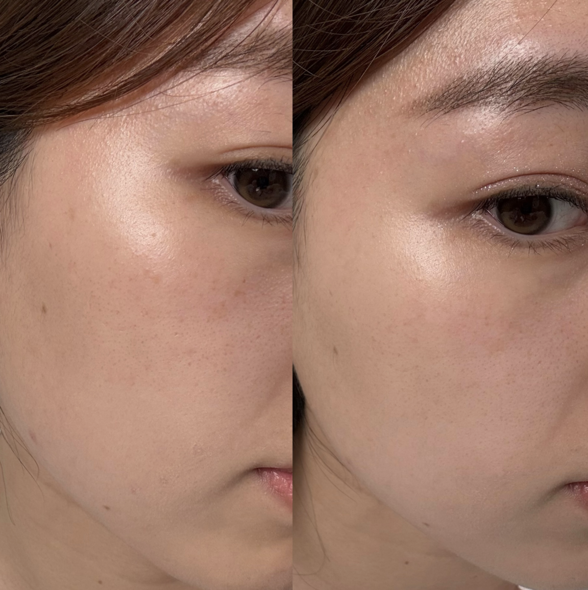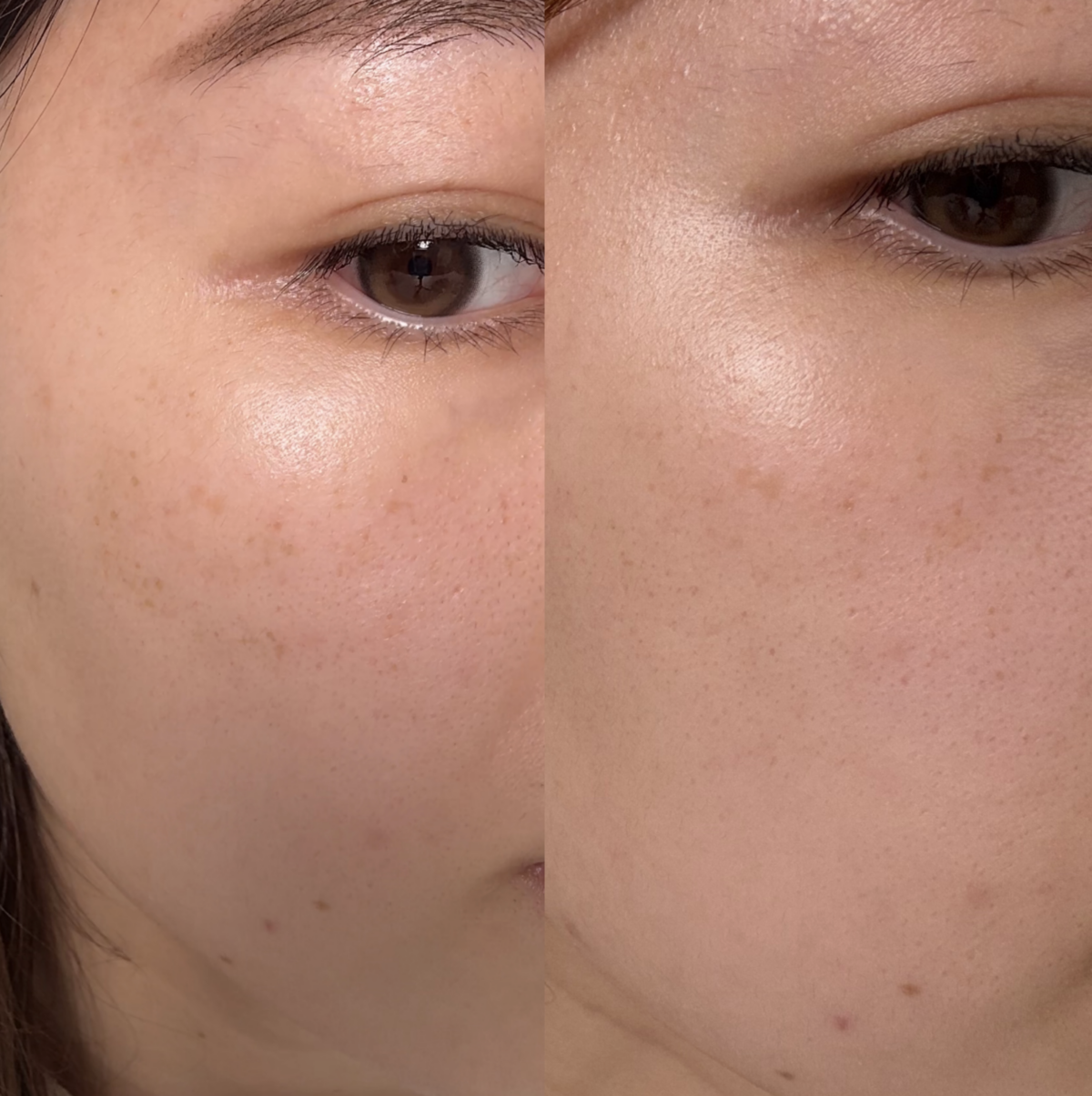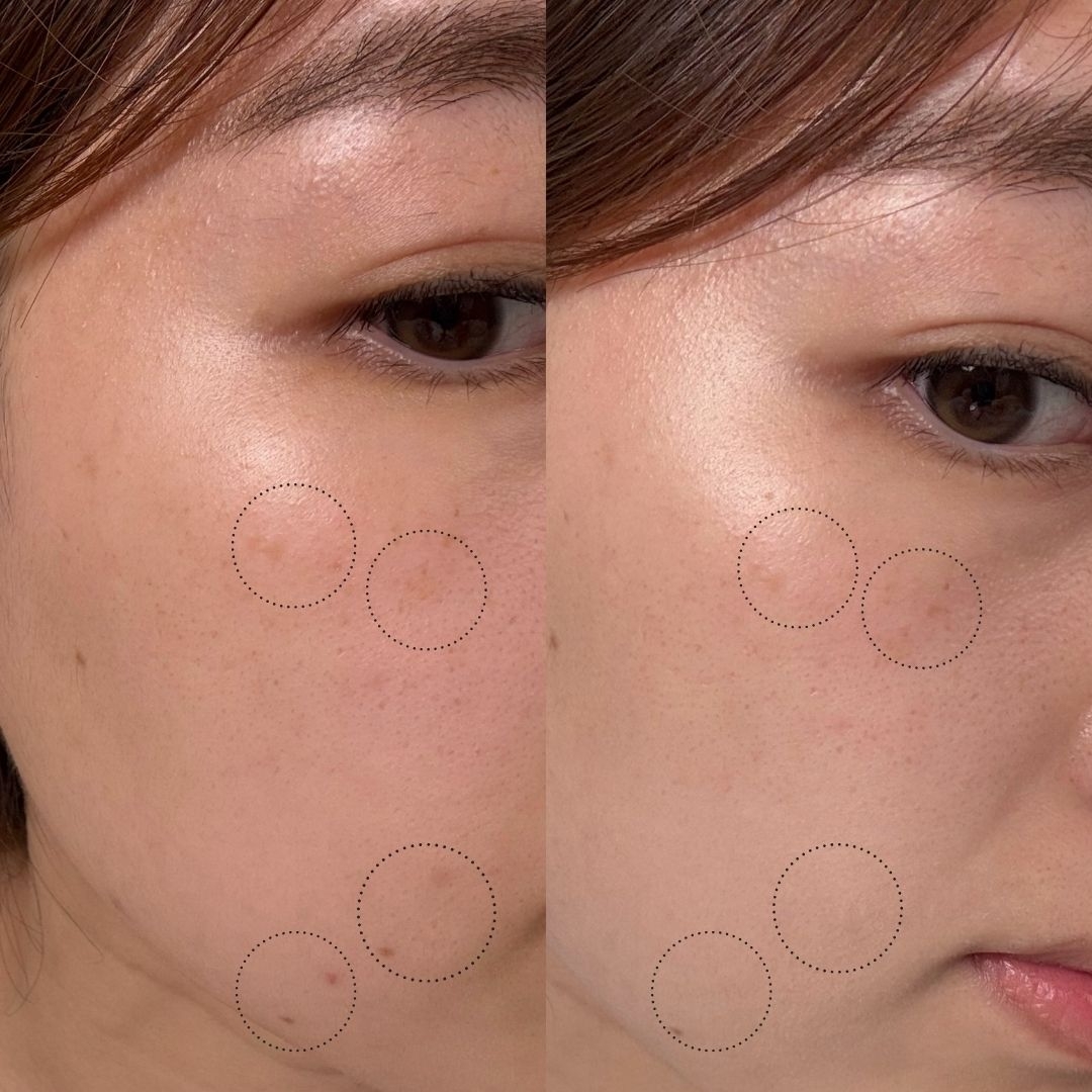 官方話 2 週淡邊緣,我實測發現:原本邊界好深、好硬嘅斑塊,邊緣位真係模糊咗、碎開咗!皮膚觀感乾淨咗好多,而家化妝薄薄搽一層底妝就遮到,唔使再厚疊遮瑕膏。