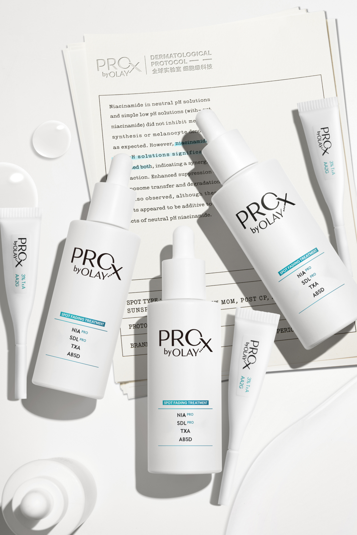 6. 指對比使用前,使用產品8周內斑點顏色持續改善,數據來自PRO X BY OLAY淡斑小白瓶 2024年第三方人體功效測試報告,實際效果因人而異。