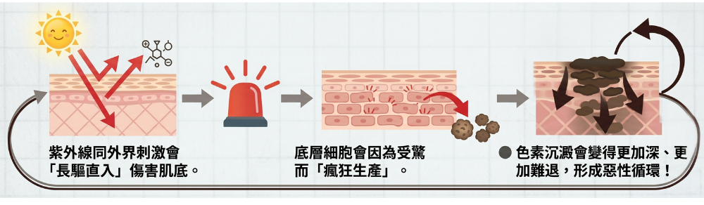 ☀️ 曬斑:長期日曬形成嘅深色斑塊